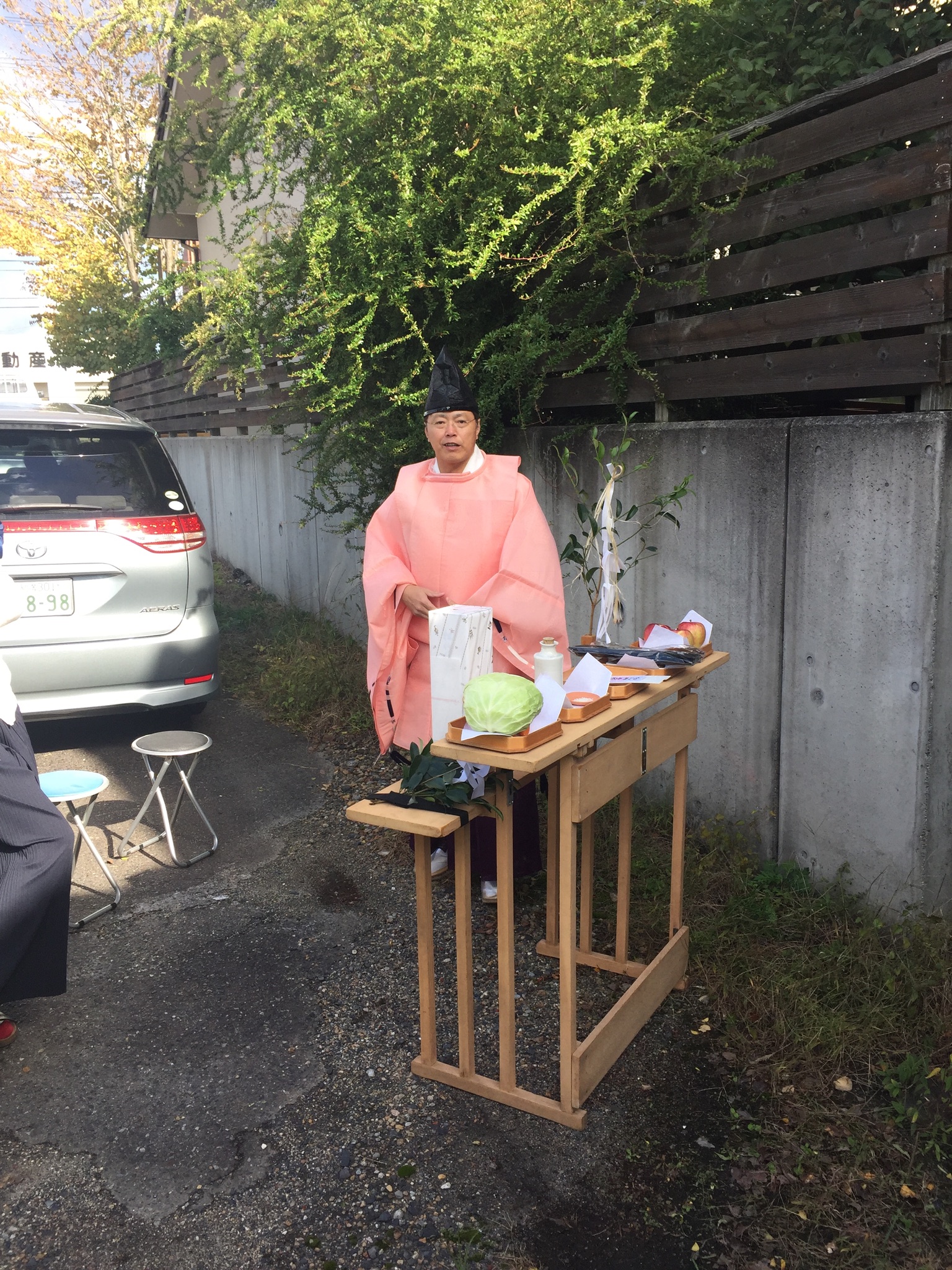 午前9時40分より、私たち家族と、山喜建設の営業、現場監督立会いのもと、白山神社神主さんにより、解体作業の無事を祈り、解体お祓いが執り行われました。