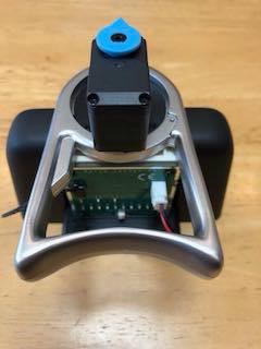 ヘッドスタンドに単3乾電池を入れたバッテリーボックスとテストボードを取り付け、首のサーボモーターの動作確認をします。